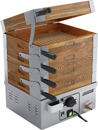 Добавить в избранное Убрать из избранного Пароварка Airhot DS-4WD 66700 руб. В корзину Напряжение 220 В Мощность 1.7 кВт Ширина 440 мм Глубина 410 мм Высота 820 мм Вес 15 кг Напряжение 220 В Мощность 1.7 кВт Ширина 440 мм Глубина 410 мм Высота 820 мм Вес 15 кг Описание Описание Используется на предприятиях общественного питания и торговли для приготовления овощей для блюд диетической, вегетарианской и восточной кухонь на пару. Модель оснащена функцией подогрева. В комплект поставки входят 4 деревянных поддона.