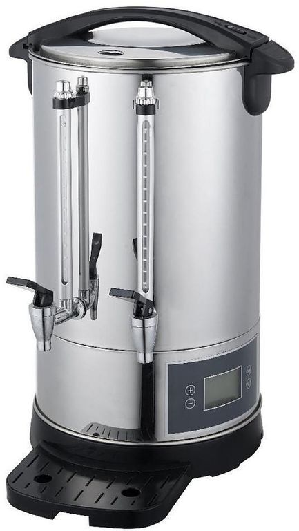 Модель оснащена электронной панелью управления, 2 термостатами с автоматическим контролем температуры и индикатором нагрева. Корпус выполнен из нержавеющей стали.