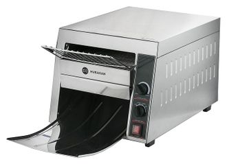 Тостер предназначен для подогрева и поджарки кусочков хлеба на предприятиях общественного питания и торговли. Модель оснащена плавной регулировкой скорости конвейера, переключателем режимов работы, решеткой, выводным желобом и поддоном для крошек. Корпус выполнен из нержавеющей стали.