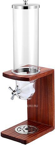 Диспенсер используется на предприятиях общественного питания и торговли для порционной раздачи сыпучих продуктов, таких как мюсли или кукурузные хлопья. Модель оснащена 1 емкостью. Корпус выполнен из дерева.