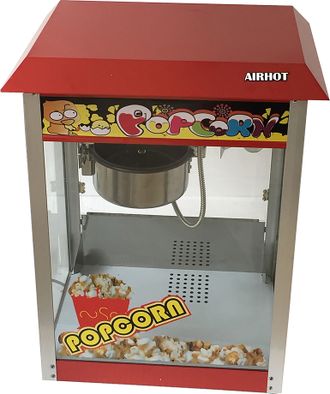 Аппарат для попкорна используется на предприятиях общественного питания и торговли. Модель оснащена съемной чашей с антипригарным тефлоновым покрытием, подсветкой готового продукта и поддоном для сбора нераскрывшихся зерен и шелухи. Корпус выполнен из алюминия, стенки - из упрочненного стекла, задняя стенка - из оргстекла.