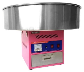 Аппарат для сахарной ваты используется на предприятиях общественного питания и торговли. На металлический бокс конструкции ставится специальная чаша из нержавеющей стали, где тонкие нити накручиваются на палочку и становятся сладкой ватой. Модель проста и удобна в использовании. Корпус выполнен из окрашенной стали, чаша-ловитель - из нержавеющей стали.