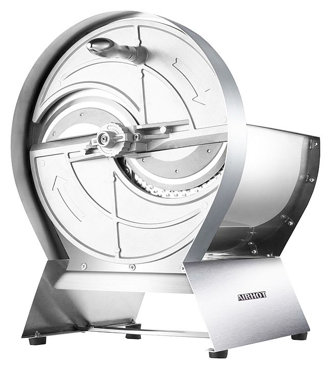 Овощерезка-слайсер используется на предприятиях общественного питания и торговли для нарезки овощей и фруктов и дальнейшего использования их в качестве ингредиентов для приготовления супов, салатов, гарниров и пр. Корпус и лезвие выполнены из нержавеющей стали.