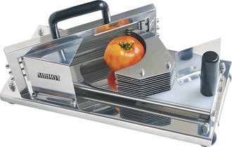 Слайсер предназначен для нарезки томатов на ровные и равные ломтики на предприятиях общественного питания и торговли. Модель оснащена 13 ножами и 4 нескользящими резиновыми ножками. Корпус выполнен из нержавеющей стали. Конструкция устройства обеспечивает безопасность и комфорт.