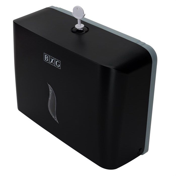 BXG PD-8025B - диспенсер листовых бумажных полотенец с корпусом из ударопрочного пластика. Предназначен для туалетных комнат со средней и высокой проходимостью. Оригинальное смотровое окно в виде листка позволяет контролировать наличие бумаги в диспенсере. Эргономичное отверстие в основании не позволяет полотенцам выпадать из диспенсера - всегда выдается только один лист.
