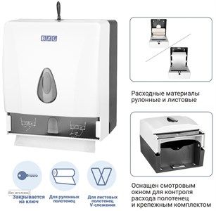 BXG-PDM-8218 - универсальный диспенсер бумажных полотенец предназначен для туалетных комнат со средней и высокой проходимостью. Отличается от других диспенсеров возможностью работать как с рулонными, так и листовыми бумажными полотенцами.