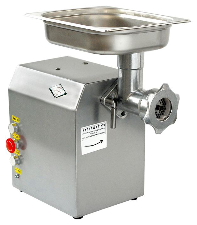 Мясорубка БЕЛТОРГМАШ МИМ-80 используется на предприятиях общественного питания, торговли, а также в производственных цехах, деятельность которых связана с выпуском гастрономических товаров, для измельчения мяса и рыбы на фарш, повторного измельчения котлетной массы и набивки колбас. Модель оснащена приводом, съемной чашей и функцией "Реверс", которая позволяет при наматывании жил освободить шнек без дополнительной разборки машин. Корпус выполнен из алюминия, облицовка - из нержавеющей стали.